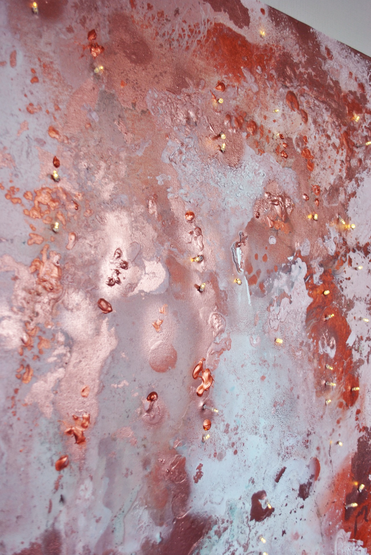 Nature is alive, it breathes, it changes. The ultimate quest of all painters is to breathe life into a painting. The LED lights in the painting aim to do just that. The lights move; the painting is alive. It's an animated form hanging on the wall, staring back at you, embodying the idea of a living amalgam of color and matter.